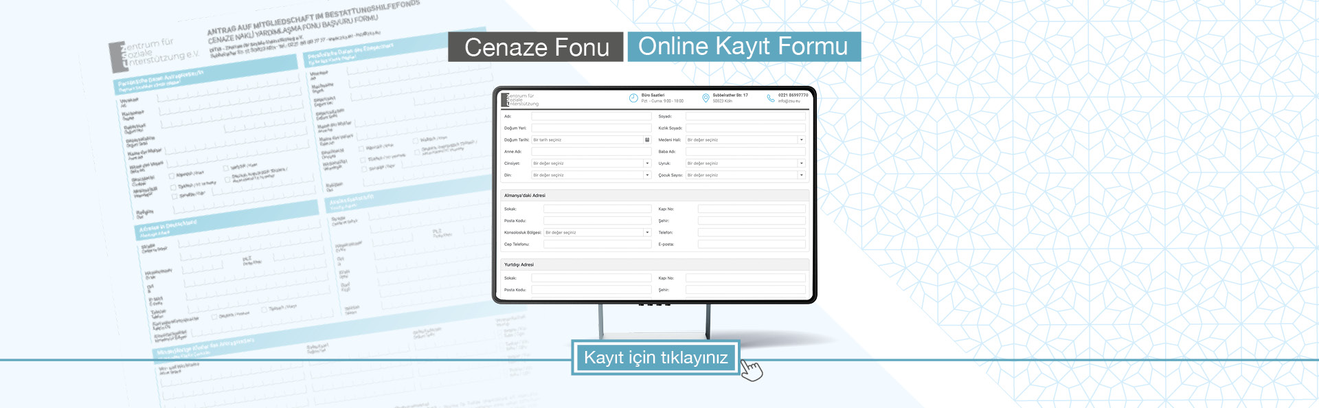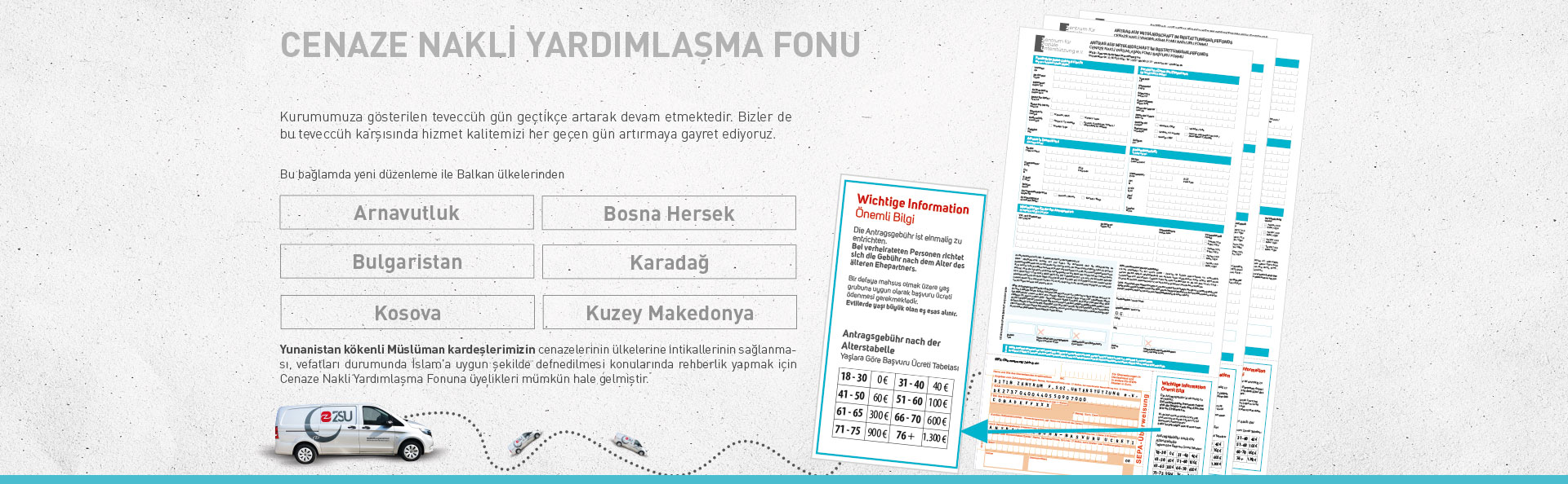 ZSU e.V., DİTİB bünyesinde faaliyet gösteren Sosyal Dayanışma Merkezi olarak, Avrupa'da yaşayan vatandaşlarımıza cenaze nakli ve defin hizmetlerinde yardımcı olmaktadır.